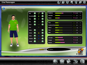 Fique à vontade para se preparar da melhor maneira para o desafio do KickOff. Você cria o personagem à sua imagem e semelhança. Determina a altura, o peso, escolhe as roupas, os acessórios e até tatuagens se quiser.